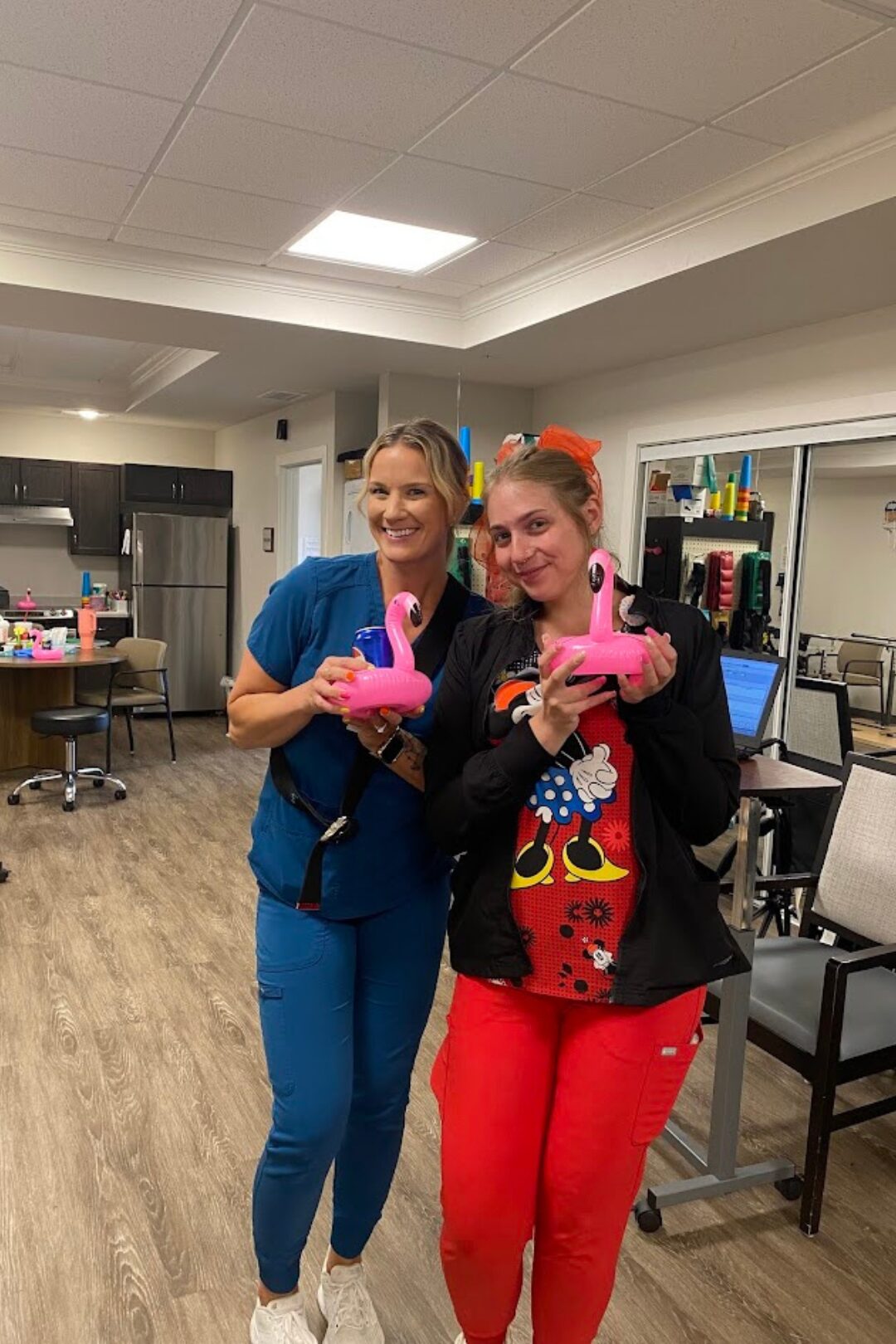 Discounted employee meals, discounted scrubs to purchase onsite, onsite free flu shots, employee referral bonuses (paid to both referring and referred employees multiple times in the first year!), and fun times to celebrate throughout the year!